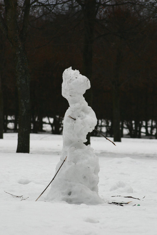 Подтаявшая снежная баба (или белка?)